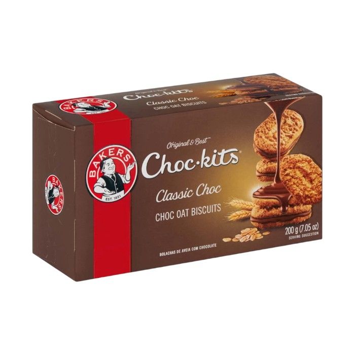 Bakers 200g Choc-Kits are a beloved South African favourite, combining golden, crunchy oat biscuits with a generous layer of smooth chocolate cream. Perfectly balanced in flavour and texture, these sandwich biscuits are ideal for enjoying with tea or coffee, packing into lunchboxes, or serving as a sweet treat for guests.
