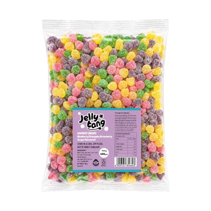 Jelly Tang Gummy Drops (900g) – colourful, fruity gummies in a soft, chewy bite.