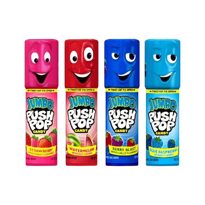 Push Pops Jumbo brings you a fun and interactive candy experience with its unique push-up design. Packed with bold, fruity flavours, this 30g lollipop offers a long-lasting treat. Perfect for kids and candy lovers, it’s a great addition to retail stores or personal collections. Sweet Depot provides competitive pricing for both wholesale and individual customers.
