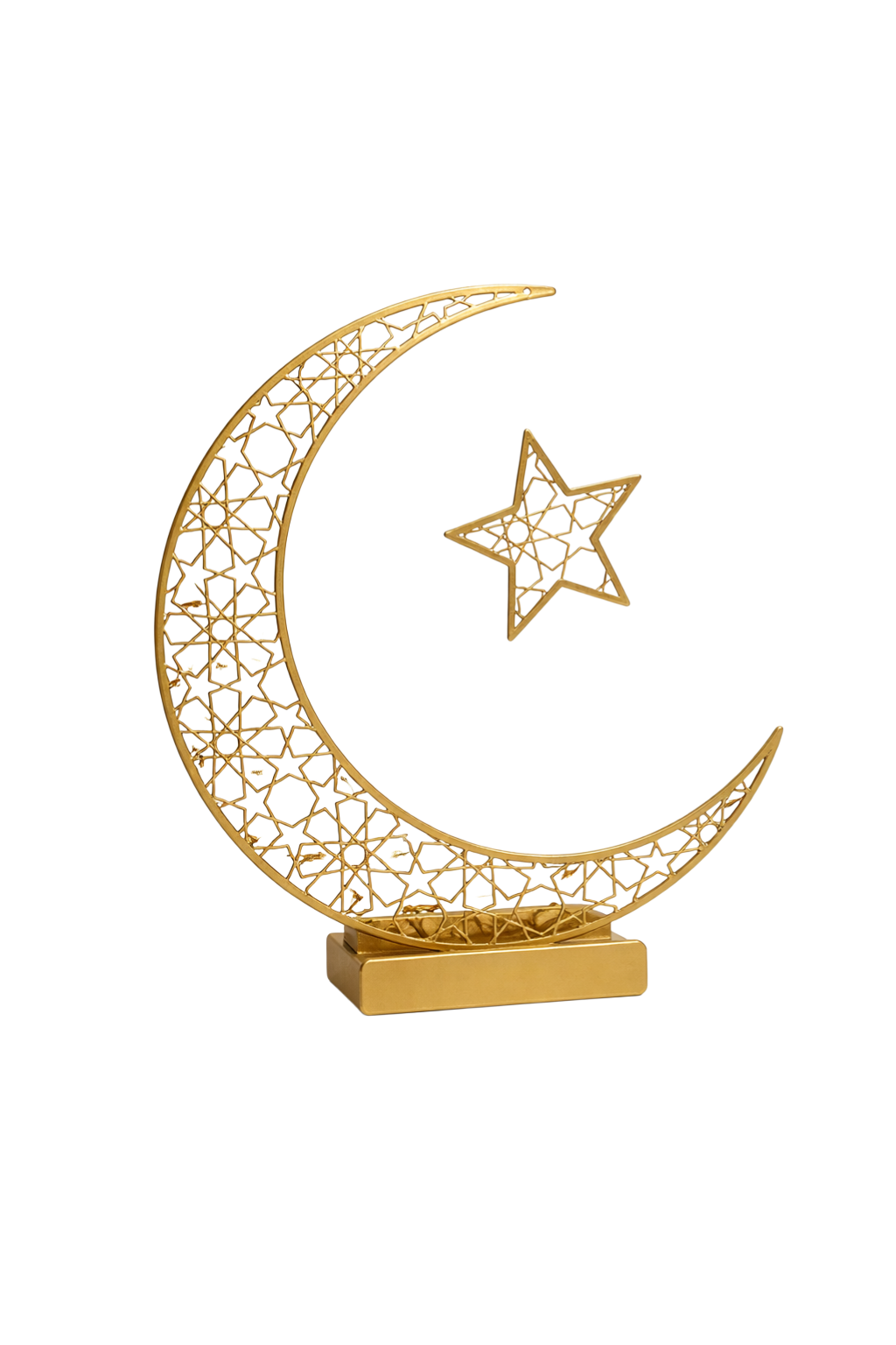 - Intricate crescent moon and star detailing