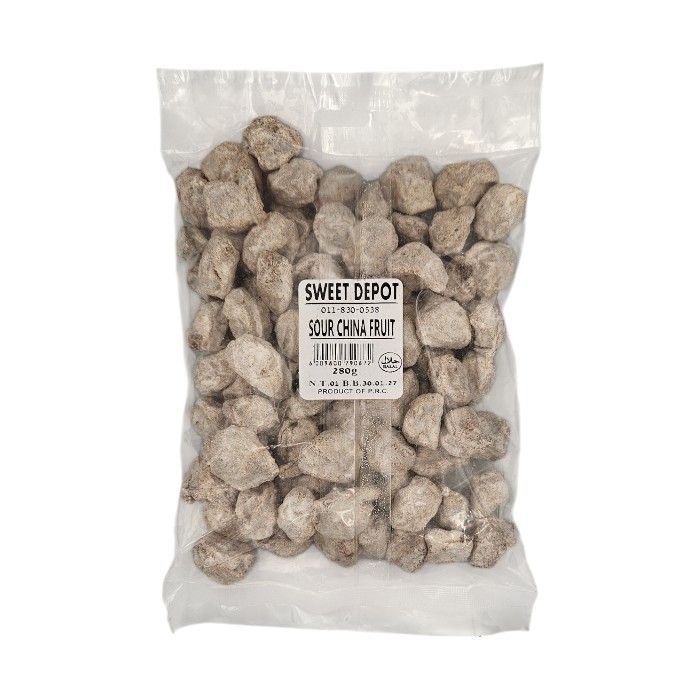 SH 230G Sour China Fruit is a unique, intensely sour dried fruit snack, perfect for those who love bold flavours. Packed with natural antioxidants and nutrients, this chewy treat delivers an unforgettable taste experience. Whether enjoyed on its own or as part of a sweet-and-sour mix, its a must-have for dried fruit lovers. Available now at Sweet Depot for retail and bulk purchase.